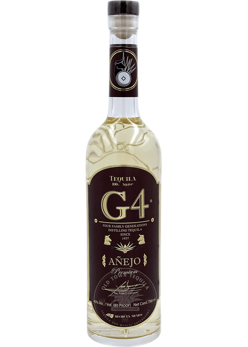 "G4 Anejo tequila is aged for two years in bourbon barrels, offering a smooth taste with notes of vanilla, agave, pepper, floral, and smoke."